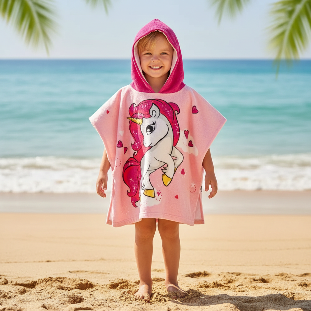 Χαρίστε στις μικρές σας πρωταγωνίστριες ένα παραμυθένιο στέγνωμα με το παιδικό πόντσο θαλάσσης Μονόκερος! Σε υπέροχη ροζ απόχρωση και με μαγικό σχέδιο που ενθουσιάζει, αυτό το πόντσο είναι το απαραίτητο αξεσουάρ για την παραλία, την πισίνα ή το κολυμβητήριο.